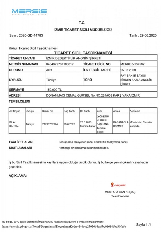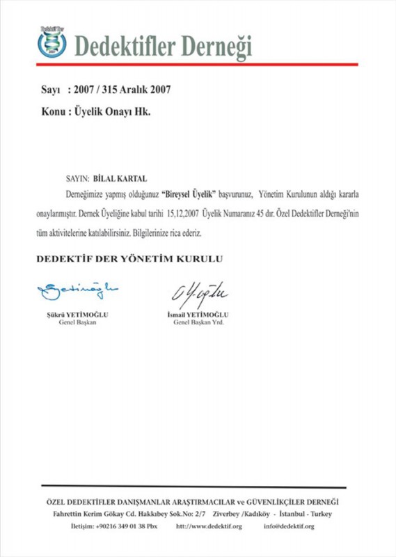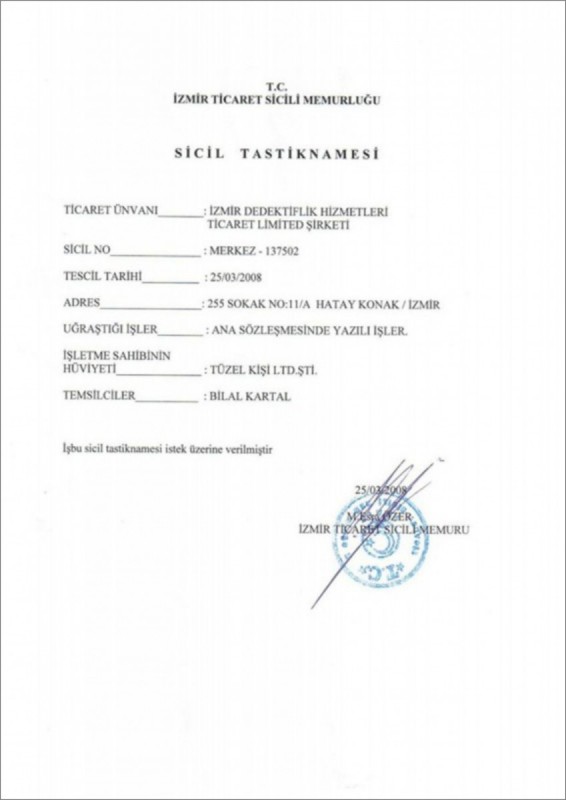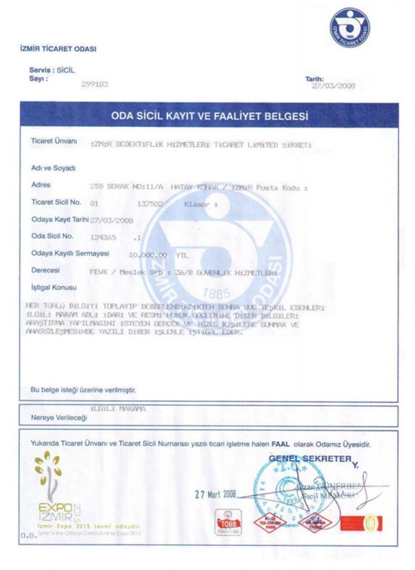 Saygılarımızla İzmir Dedektiflik A.Ş.